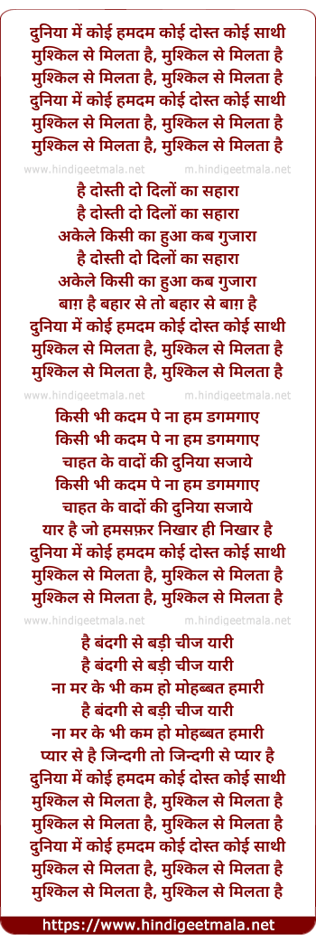 Lyrics of Duniya Mein Koi Humdum - दुनिया में कोई हमदम