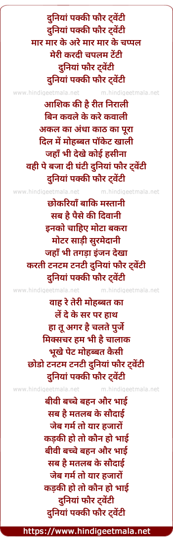 Lyrics of Duniya Pakki Four Twenty - दुनियां पक्की फौर ट्वेंटी