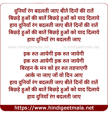 Lyrics of Duniya Rang Badalti Jaye - दुनियाँ रंग बदलती जाए