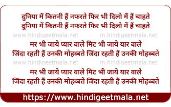 Lyrics of Zindaa Rahati Hain Unaki Mohabbaten - जिंदा रहती हैं उनकी मोहब्बते