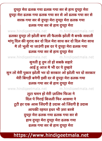 Lyrics of Dupatta Mera Dhalak Gaya Sar Se - दुपट्टा मेरा ढलक गया सर से