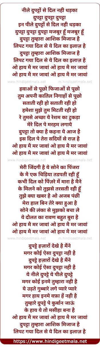 Lyrics of Dupatta Tumhara Aashik Mijaj Hai - दुपट्टा तुम्हारा आशिक मिजाज है
