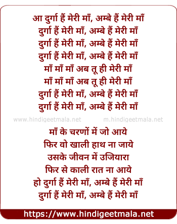 Lyrics of Durgaa Hai Meri Ma - दुर्गा हैं मेरी माँ