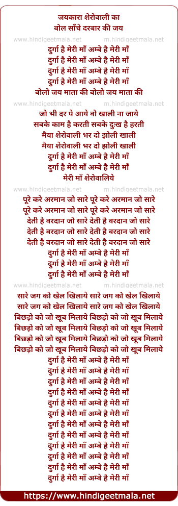 Lyrics of Durga Hai Meri Maa Ambe Hai Meri Maa - दुर्गा है मेरी माँ अम्बे है मेरी माँ