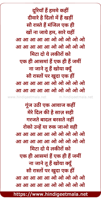Lyrics of Duriya Hai Ham Me Kahi (Raaste) - दूरियाँ हैं हममे कहीं
