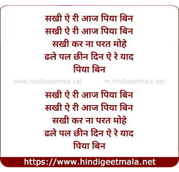 Lyrics of Eastern Clouds - सखी ऐ री आज पिया बिन