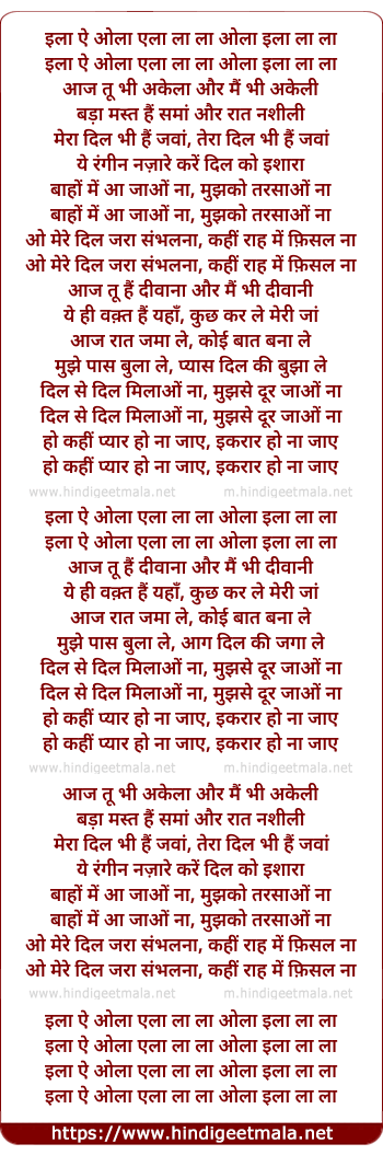 Lyrics of Eela A - इला ऐ ओला एला ला ला ओला इला ला ला