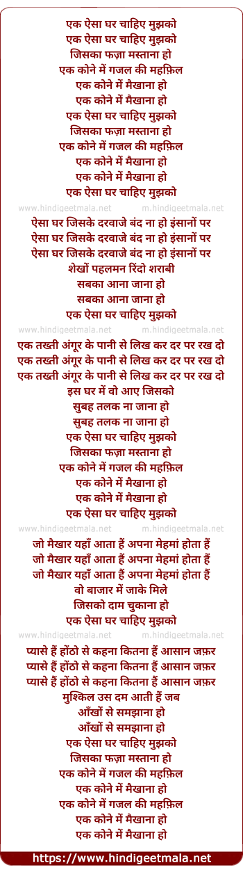 Lyrics of Ek Aisa Ghar Chaahiye Mujhako - एक ऐसा घर चाहिए मुझको
