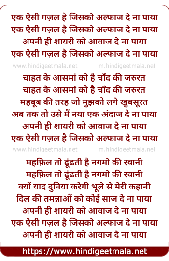 Lyrics of Ek Aisi Ghazal Hai - एक ऐसी गज़ल है