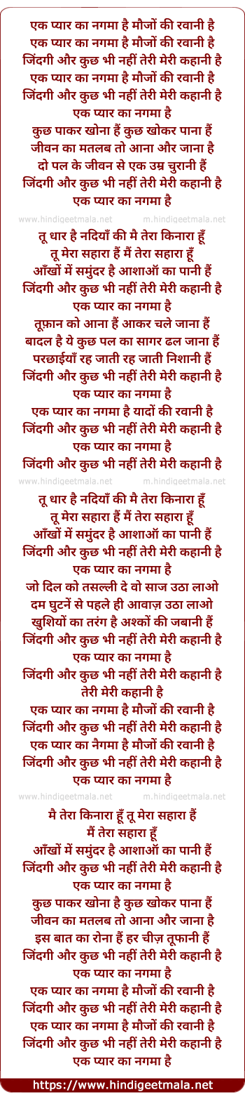 Lyrics of Ek Baar Pyaar Ka (Duet) - एक प्यार का नगमा है मौजों की रवानी है