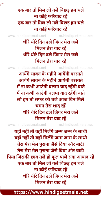 Lyrics of Ek Baar To Mil Lo Gale - एक बार तो मिल लो गले