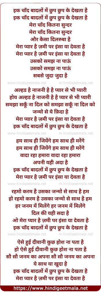 Lyrics of Ek Chand Badalo Me - इक चाँद बादलों में