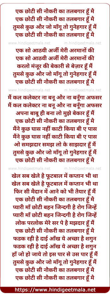 Lyrics of Ek Chhoti Si Naukri Ka Talabgar Hu Main - एक छोटी सी नौकरी का तलबगार हूँ मै