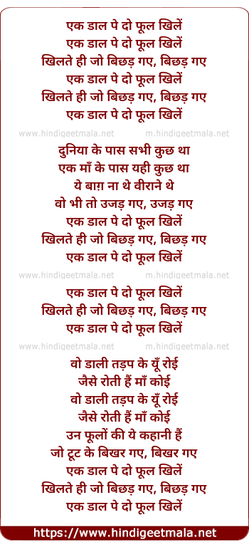 Lyrics of Ek Daal Peh Do Phool Khile - एक डाल पे दो फूल खिलें