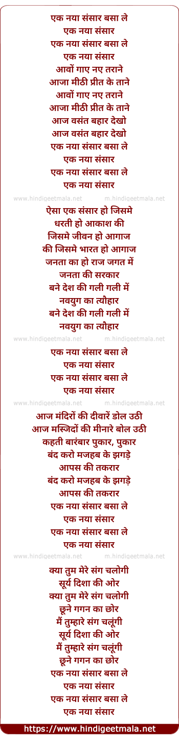 Lyrics of Ek Daya Sansar Basa Le - एक नया संसार बसा ले