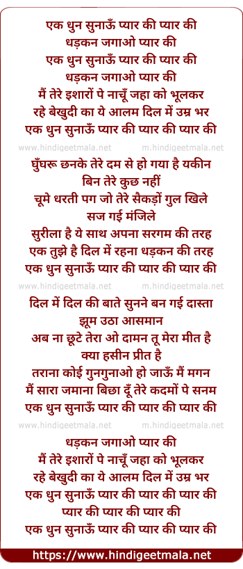 Lyrics of Ek Dhun Sunau Pyar Ki - एक धुन सुनाऊँ प्यार की