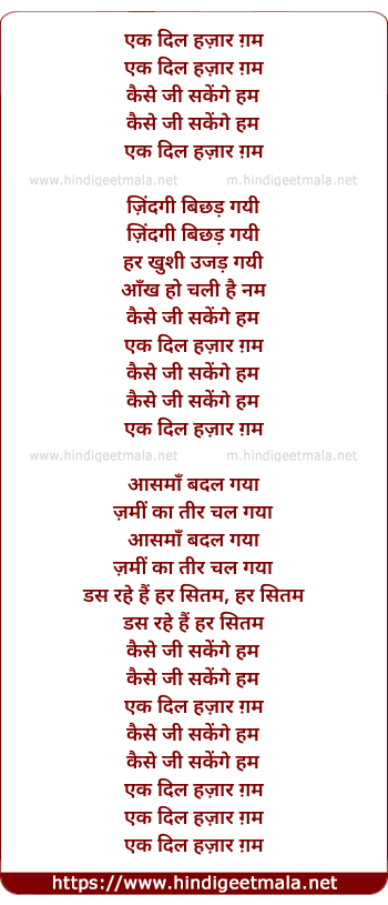 Lyrics of Ek Dil Hazar Gham - एक दिल हज़ार ग़म