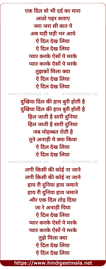 Lyrics of Ek Dil Wo Bhi Dard Ka Mara - एक दिल वो भी दर्द का मारा
