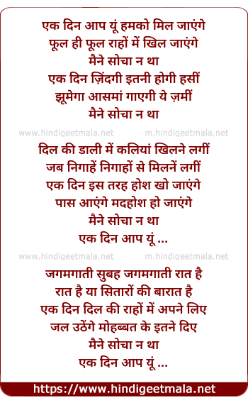 Lyrics of Ek Din Aap Yu, Maine Sochaa Na Thaa - एक दिन आप यूँ, मैने सोचा ना था