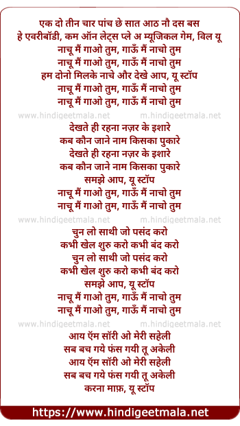 Lyrics of Ek Do Tin Char Nachu Main Gaao Tum - एक दो तीन चार नाचू मैं गाओ तुम