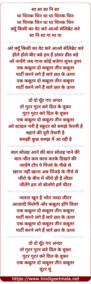 Lyrics of Ek Kabootar Do Kabootar Teen Kabootar - एक कबूतर दो कबूतर तीन कबूतर