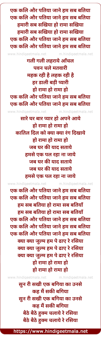 Lyrics of Ek Kali Aur Do Patiya - एक कलि और पतिया