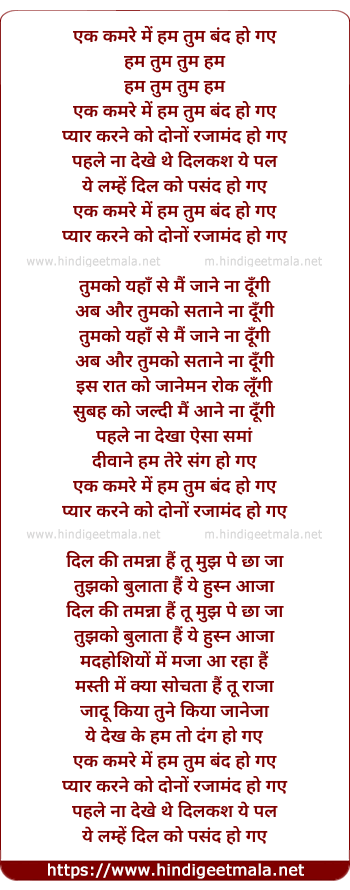 Lyrics of Ek Kamare Me Ham Tum Band Ho Gaye - एक कमरे में हम तुम बंद हो गए