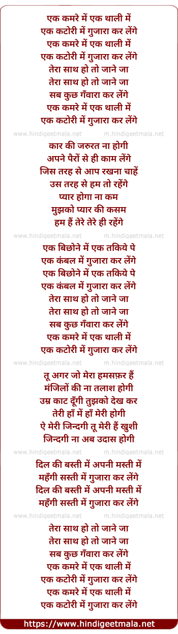 Lyrics of Ek Kamre Me Ek Thali Me - एक कमरे में एक थाली में