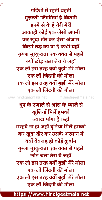 Lyrics of Ek Lau Iss Tarah Kyun Bujhi Mere Maula - एक लौ इस तरह क्यूँ बुझी मेरे मौला