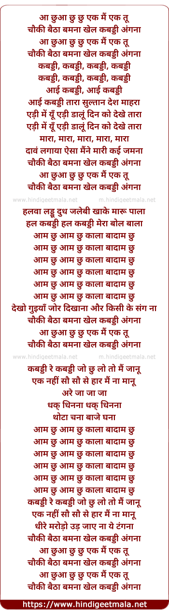 Kabaddi, Kabaddi, Kabaddi, Kabaddi,