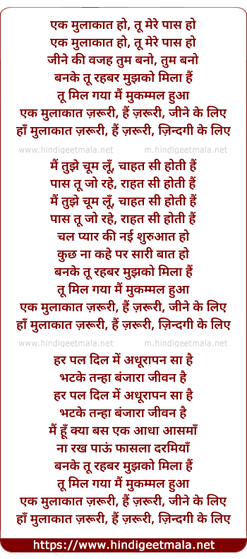 Lyrics of Ek Mulaqat - एक मुलाकात