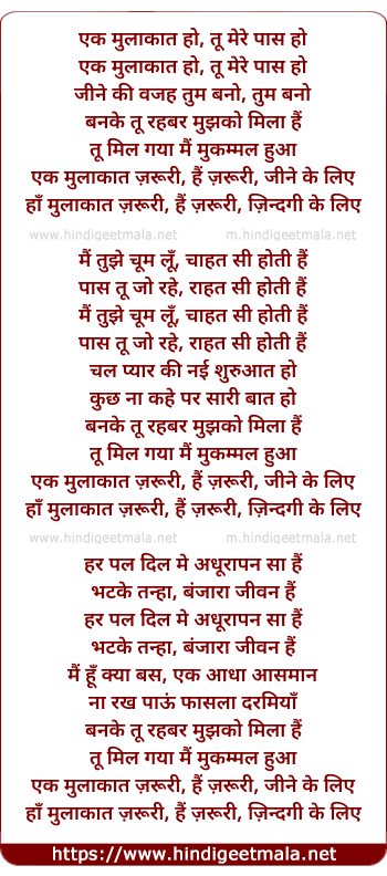 Lyrics of Ek Mulaqat - एक मुलाकात