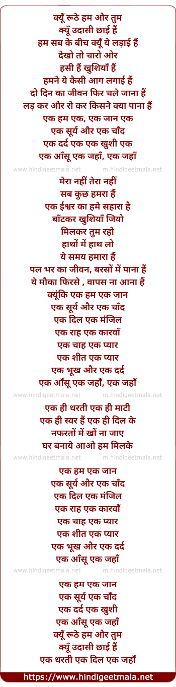 ek hi swar hai ek hi dil ke