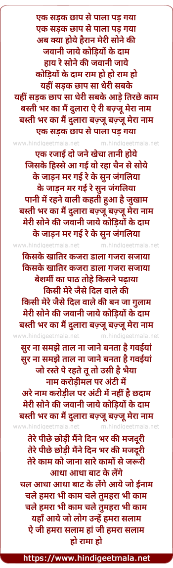 Lyrics of Ek Sadak Chhaap Se Paala Pad Gaya - एक सड़क छाप से पाला पड़ गया