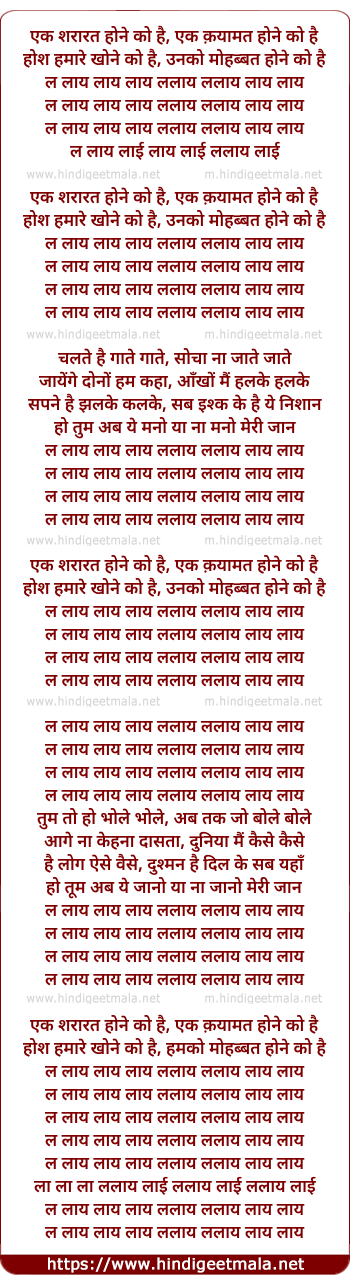 Lyrics of Ek Shararat Hone Ko Hai - एक शरारत होने को है