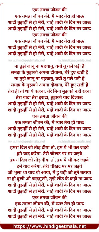 Lyrics of Ek Tamanna Jeewan Ki - एक तमन्ना जीवन की