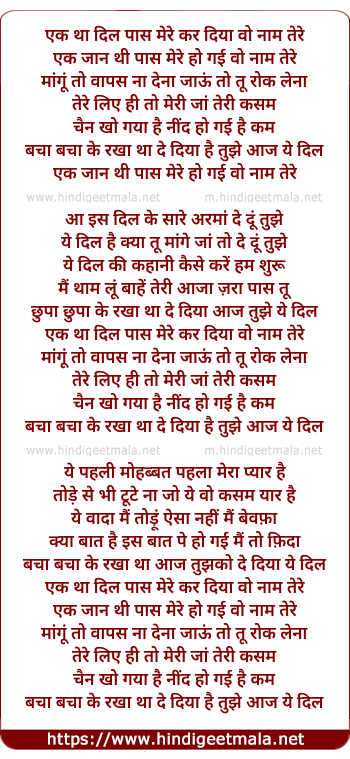 Lyrics of Ek Tha Dil Paas Mere - एक था दिल पास मेरे