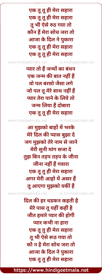Lyrics of Ek Tu Hi Mera Sahara - एक तू तू ही मेरा सहारा