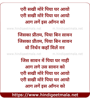 Lyrics of Eri Sakhi - एरी सखी