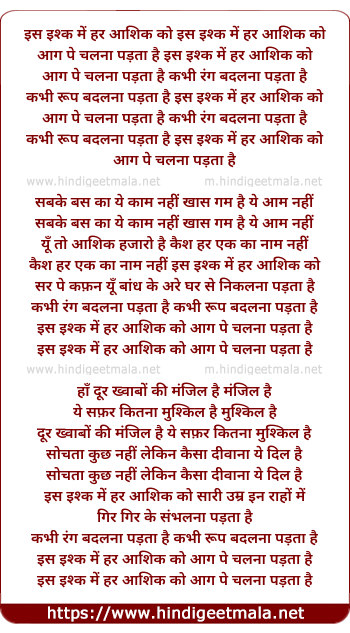 is ishk me har aashik ko sari umar in raho me