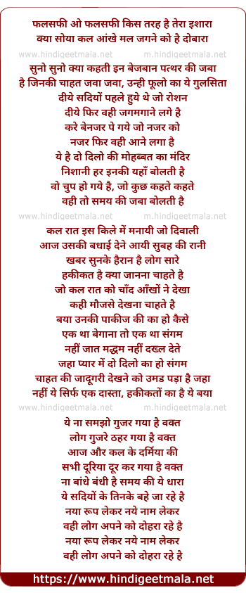 Lyrics of Falsafi O Falsafi - फलसफी ओ फलसफी किस तरह है तेरा इशारा