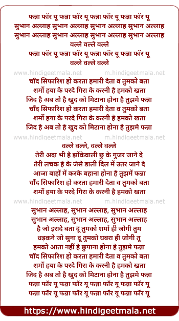 Lyrics of Fanaa For You (Club Mix) - फन्ना फॉर यू