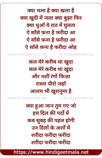 Lyrics of Ae Sanse Faana Hai Fareeda - ऐ साँसे फ़ना है फरीदा