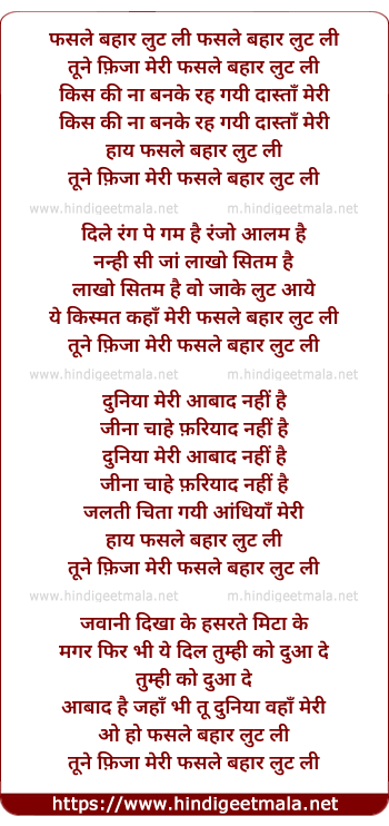 Lyrics of Fasale Bahar Lut Li Tune - फसले बहार लुट ली तूने