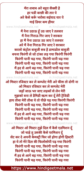 Lyrics of Firangi Paani Chad Gaya - फिरंगी पानी चढ़ गया