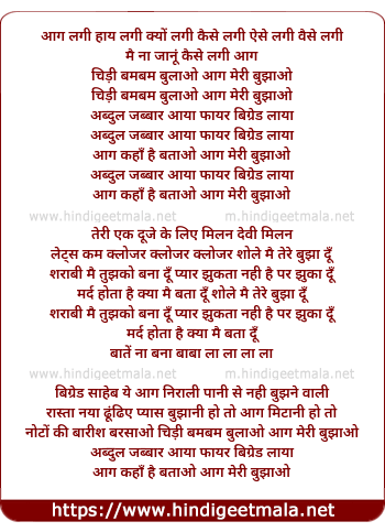 Lyrics of Fire Brigade, Aag Lagi Haye Lagi - फायर बिग्रेड, आग लगी हाय लगी