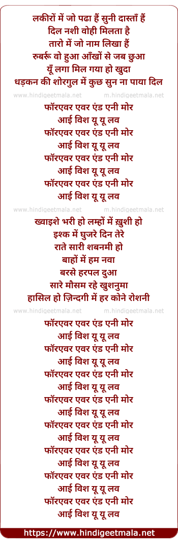 Poetic Translation - Lyrics of Forever More - फॉरएवर मोर