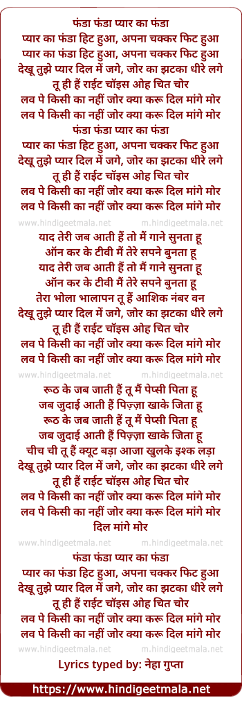 Lyrics of Funda Funda Pyar Kaa Funda - फंडा फंडा प्यार का फंडा