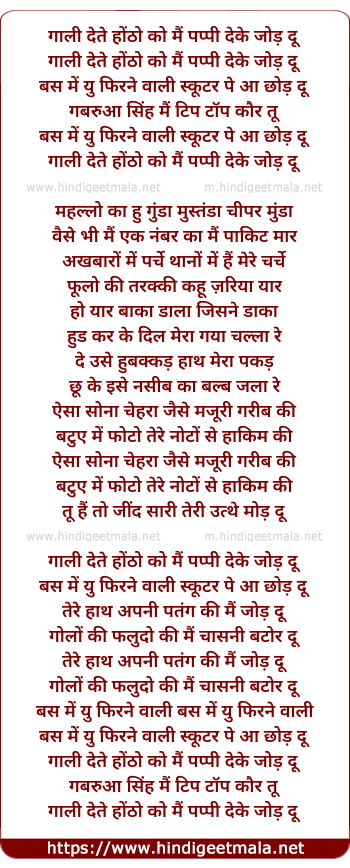 Lyrics of Gaali Dete Hoton Ko - गाली देते होंठो को