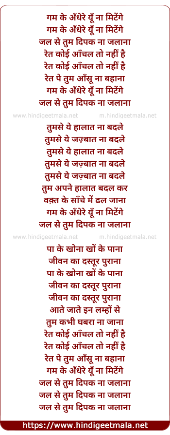 Lyrics of Gam Ke Andhere - गम के अँधेरे यूँ ना मिटेंगे
